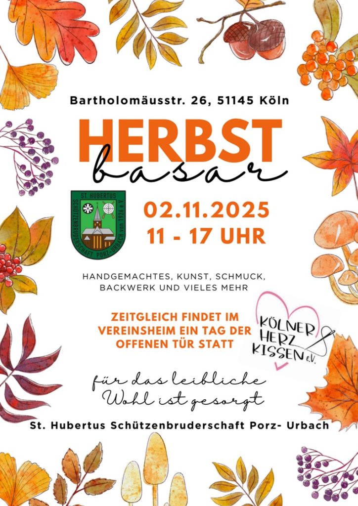 Am Sonntag, den 2. November, von 11 bis 17 Uhr, findet der traditionelle Herbstbasar in unserem Schützenheim statt.